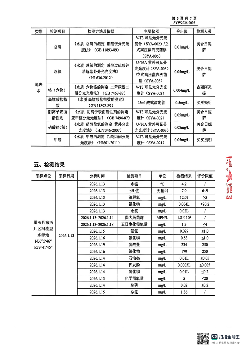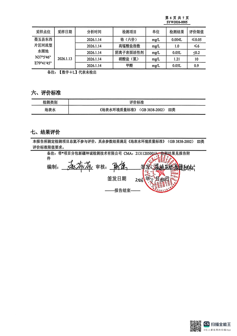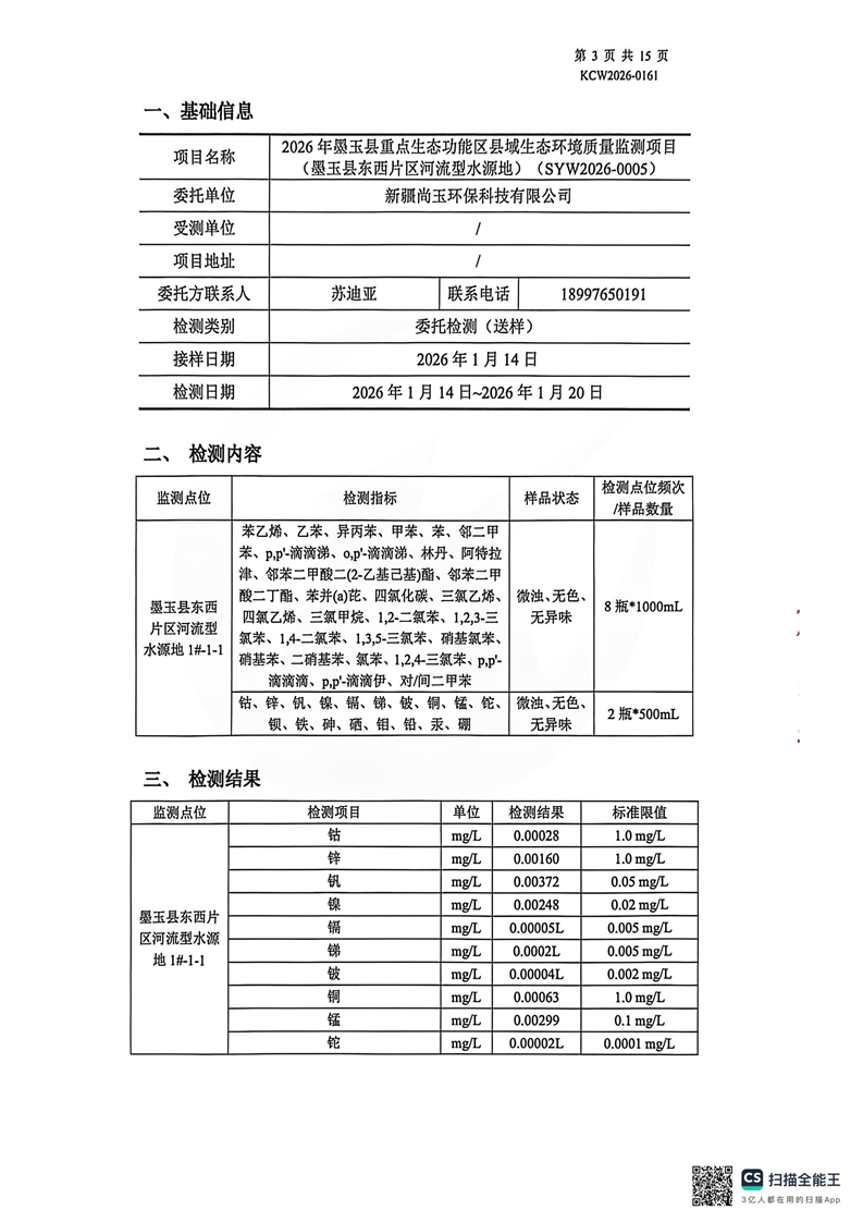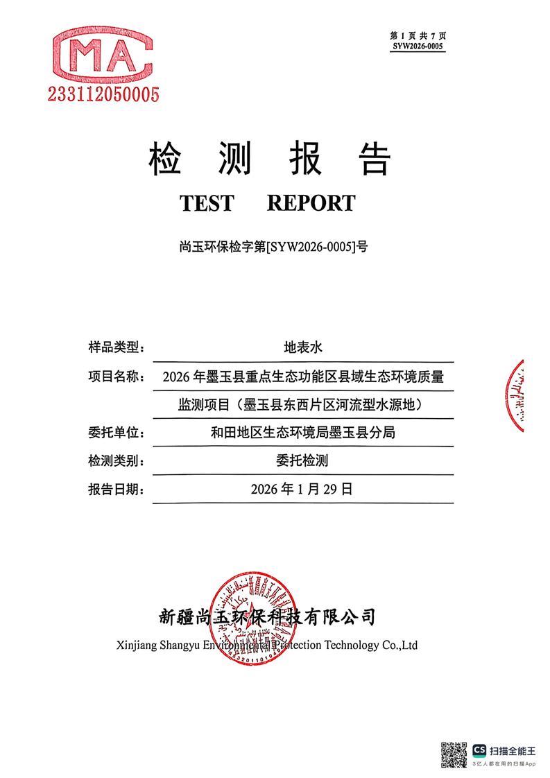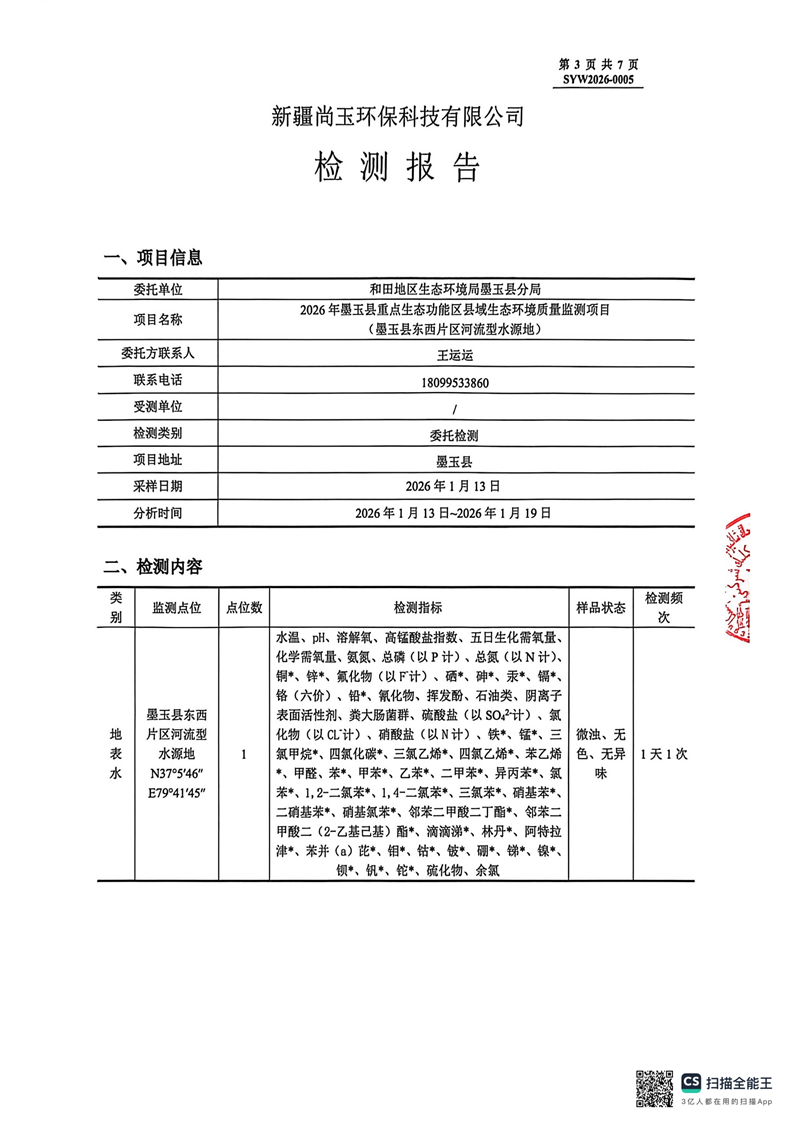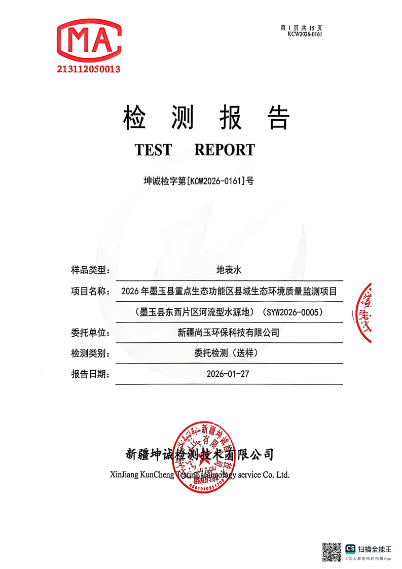 2026年墨玉县重点生态功能区县域生态环境质量监测项目(墨玉县东西片河流型水源地)