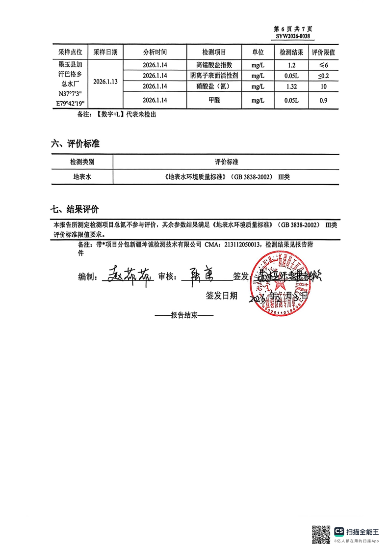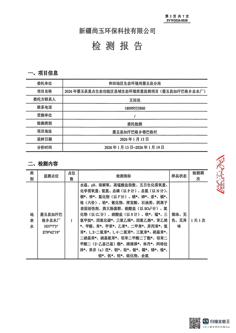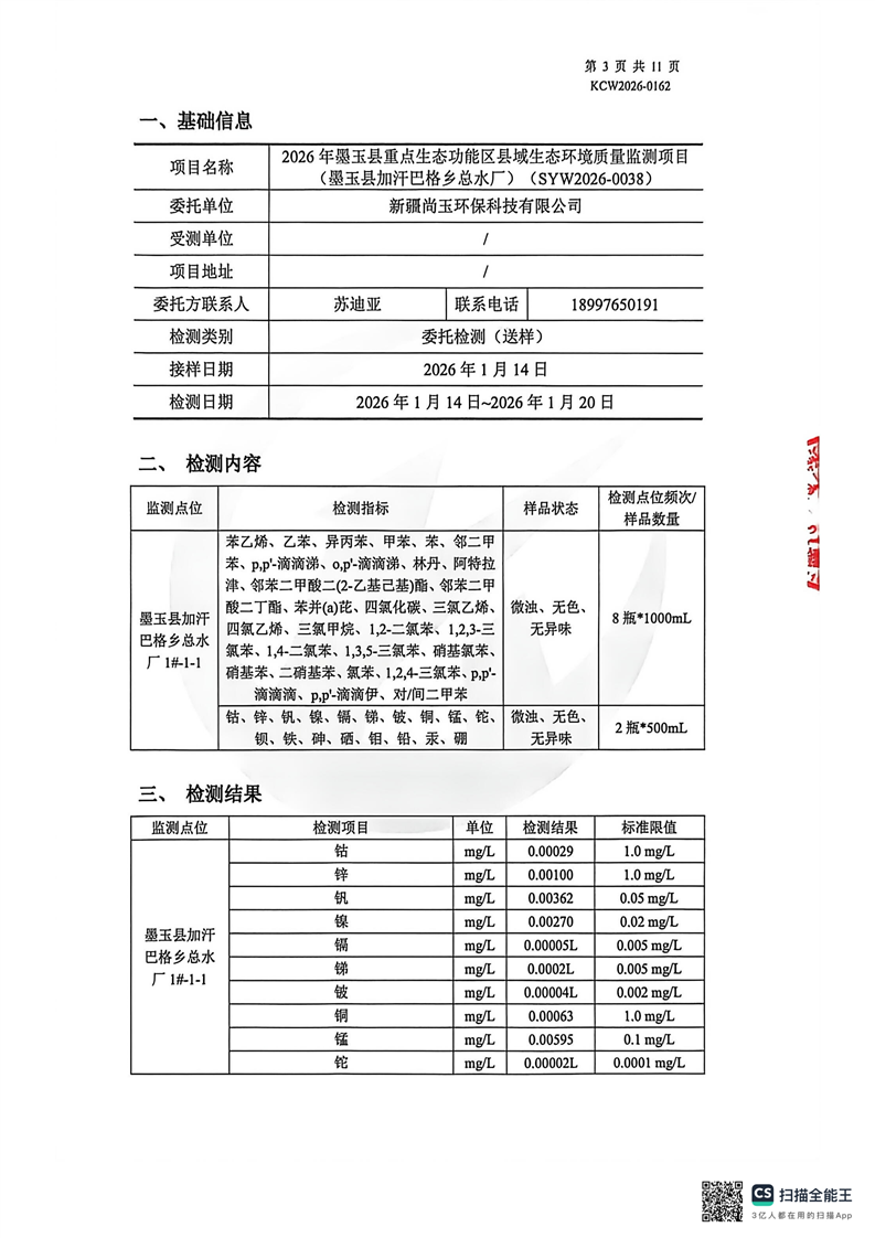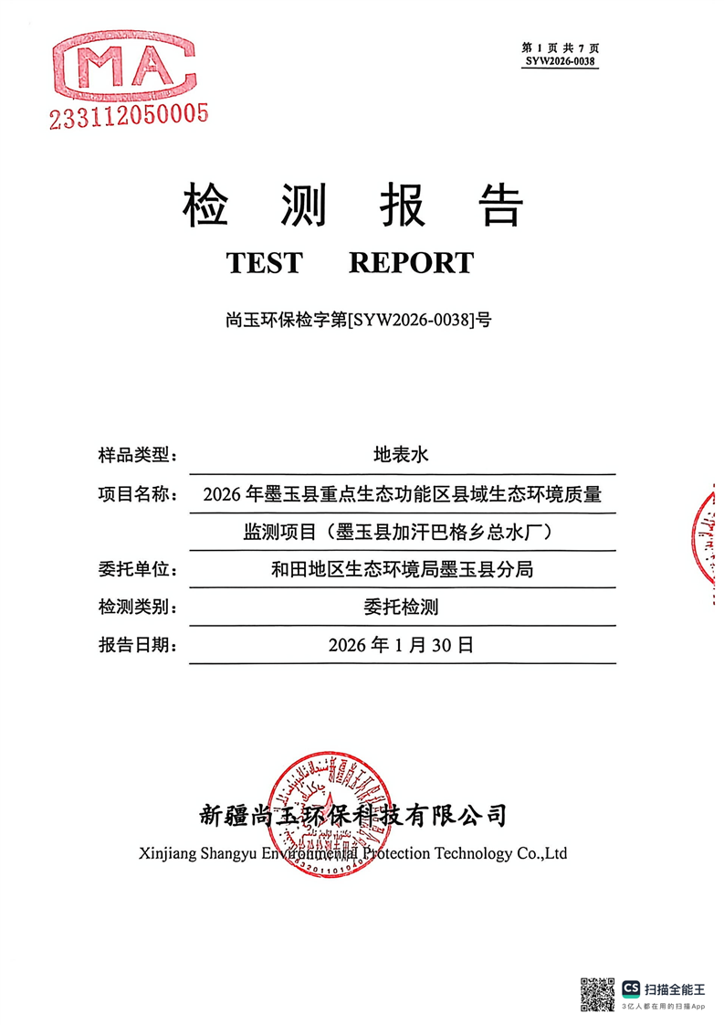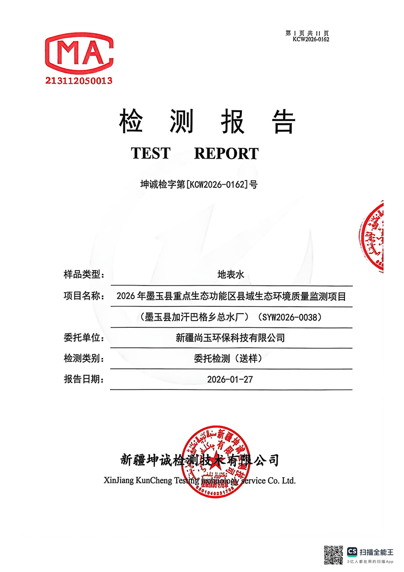 2026年墨玉县重点生态功能区县域生态环境质量监测项目(墨玉县加汗巴格乡总水厂)