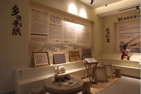 改造后的桑皮纸产业园内容丰富、形式多样,为游客提供了沉浸式的文化体验。其中,桑皮纸展示馆以四大主题展览为核心。“乡间寻纸”探寻桑皮纸的乡土根脉,“纸焕新生”展示传统工艺在现代设计中的创新应用,“纸传千年”回溯桑皮纸的传承之路,“纸物产业”展望桑皮纸的未来发展。