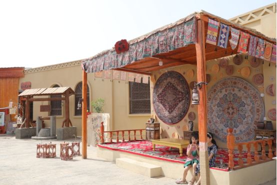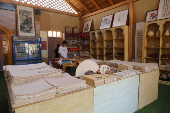此外,桑皮纸产业园内设有桑皮纸体验区,游客可亲手参与造纸过程。园区还融合了当地民俗文化,设有艾德莱斯绸销售店、维医体验馆、老茶馆等特色区域,让游客在游览中感受民俗风情。