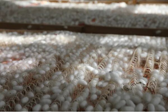 眼下,柏雅农业正全力推进今年最后一批桑蚕的收尾工作,成熟的蚕茧已完成网架剥离并陆续入库。今年,公司共养殖桑蚕300余张,全年蚕茧总产量预计达到9吨以上。