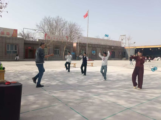 压腿、倒立、翻跟头……3月24日,在墨玉县喀尔赛镇阿热勒村的训练场上,一群孩子正挥汗如雨地排练杂技短剧《小英雄哪吒》。他们的节目刚刚入选2025年新疆“群众村晚”优秀作品展演展示活动,连日来,在专业老师的指导下,孩子们反复打磨动作,渴望在更大的舞台上绽放光彩。