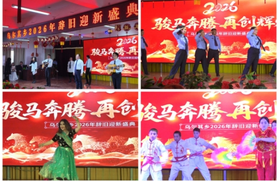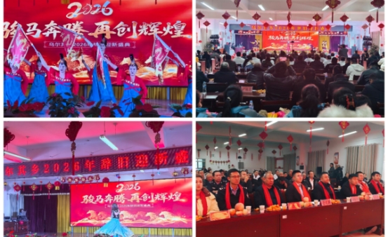 12月29日下午,乌尔其乡举办“2026年辞旧迎新文艺汇演”活动,全乡200余名干部职工和群众代表齐聚一堂,共迎元旦佳节。此次文艺汇演节目精彩纷呈、形式多样,来自乌尔其乡各村的工作队干部、村干部及少年儿童轮番登台献艺,为观众带来了一场视听盛宴。节目涵盖舞蹈、歌曲、情景剧、魔术等多种类型。其中情景剧《总书记的回信》《党的政策亚克西》、《魔术》、《春天的快乐》、歌曲《五百年》、《祖国不会忘记》等节目轮番上演,将现场喜庆热烈的气氛一次次推向高潮,赢得台下观众阵阵掌声与欢呼声。