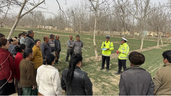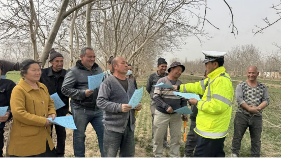 春耕农忙正当时,安全护航不松懈。为切实保障春耕生产期间农村道路交通安全,有效预防和减少涉农交通事故,近日,和田地区墨玉县公安局交通管理大队组织民辅警深入乡村,开展春耕交通安全宣传暨“美丽乡村行”主题活动,把安全知识送到田间地头,把平安守护送到群众身边。