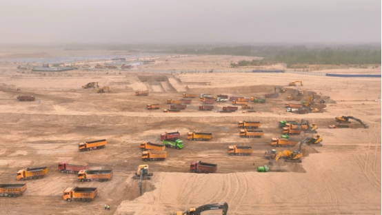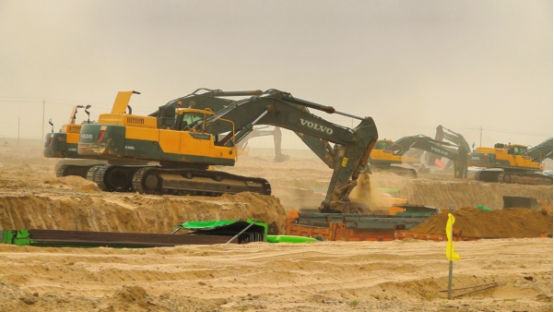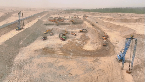 截至目前,该项目1号渠已完成1.6公里土方开挖、3号渠完成1100余米土方开挖,其中加高段700米混凝土浇筑、新建段 400米混凝土底板及侧墙浇筑均已完工。项目生产经理李沛轩在沉沙调节池施工现场说:“为保障施工效率,现场投入了180余台渣土运输车、挖掘机,40余辆洒水车,以及15台左右装载机、平地机,已完成沉沙调节池土方开挖约230万方,下一步将继续抢抓施工黄金期,为后续沉沙调节池主体结构施工和整体工程完工打下基础。”