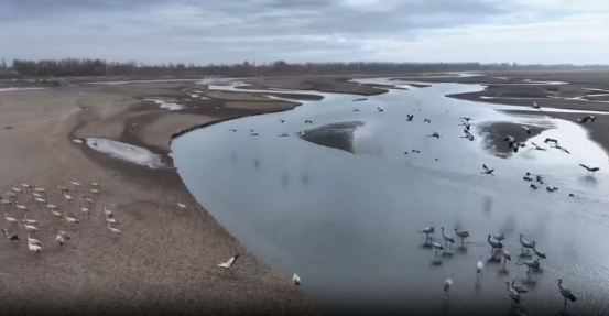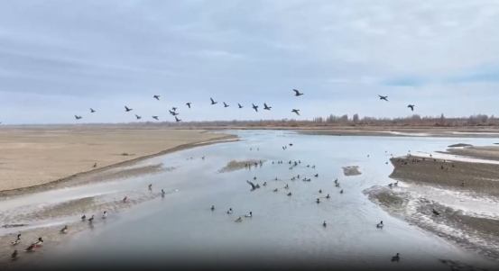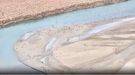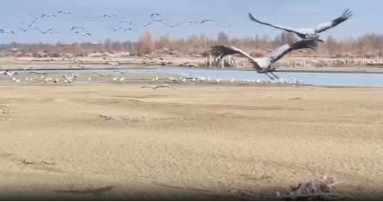 如今的墨玉河周边,植被愈发繁茂,生态环境持续向好,让这里成为了候鸟迁徙路上的重要停歇地。灰鹤、天鹅、灰雁等大批候鸟纷纷前来“安家落户”,不仅丰富了生物多样性,更彰显了墨玉县在生态保护与修复工作上的扎实成果。
