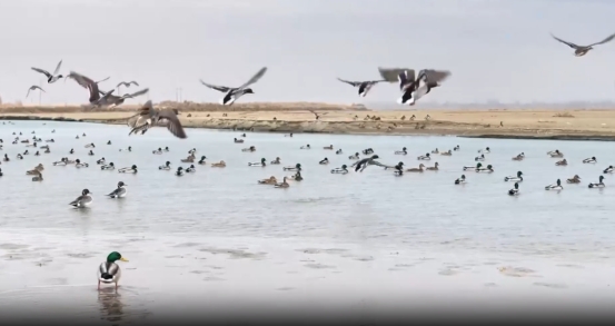 12月22日,冬至刚过,寒意更浓,墨玉县喀瓦克乡南坪水库旁的河道里却热闹非凡。绿头鸭、灰雁等国家级保护鸟类成群结队,或在水中嬉戏追逐,或在冰面悠闲漫步,不远处的稻田里,成群的国家二级保护动物灰鹤正低头觅食,神态悠然自得,构成了一幅人与自然和谐共生的生态美好画卷。