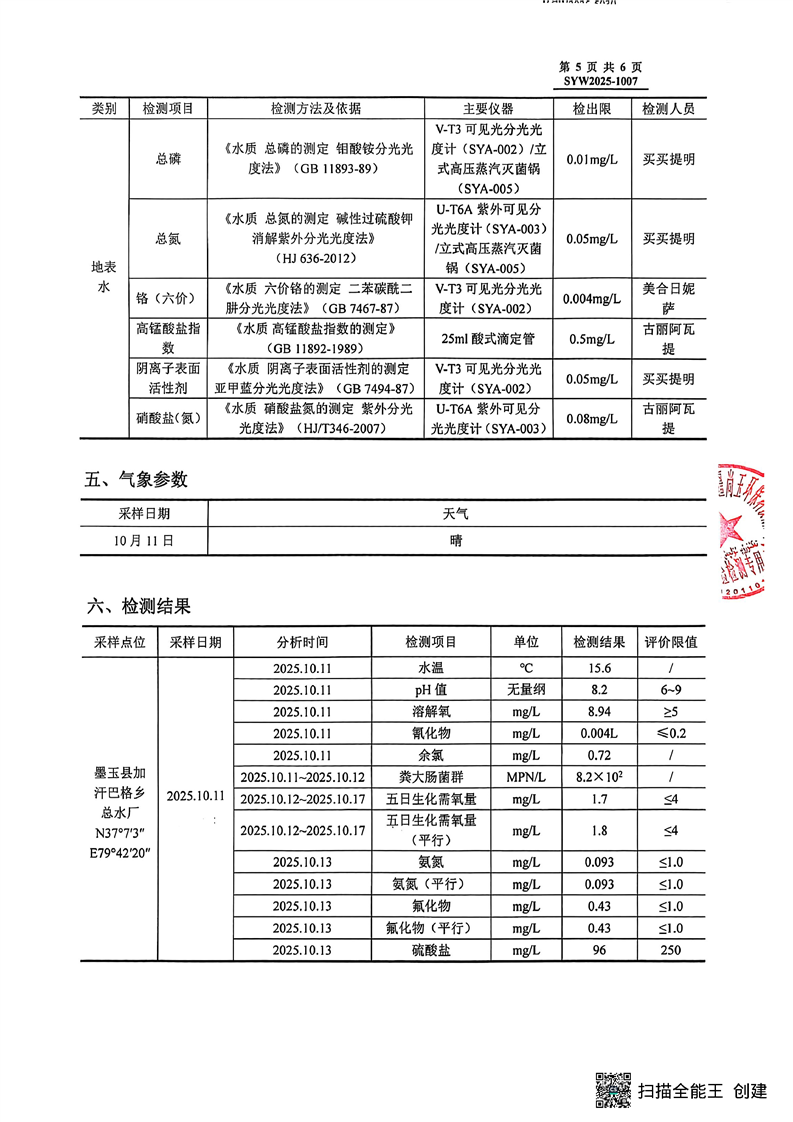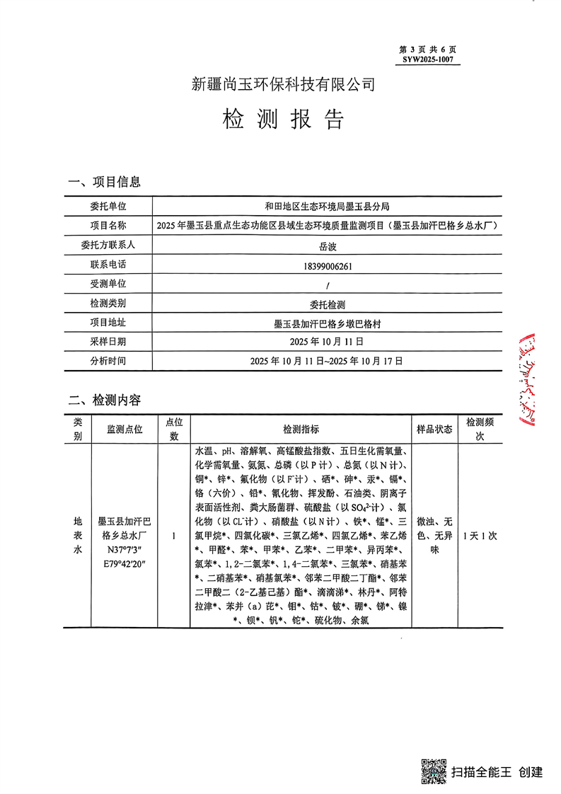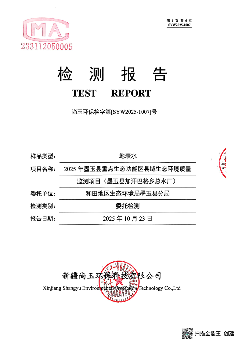 2025年墨玉县重点生态功能区县域生态环境质量监测项目(墨玉县加汗巴格乡总水厂)