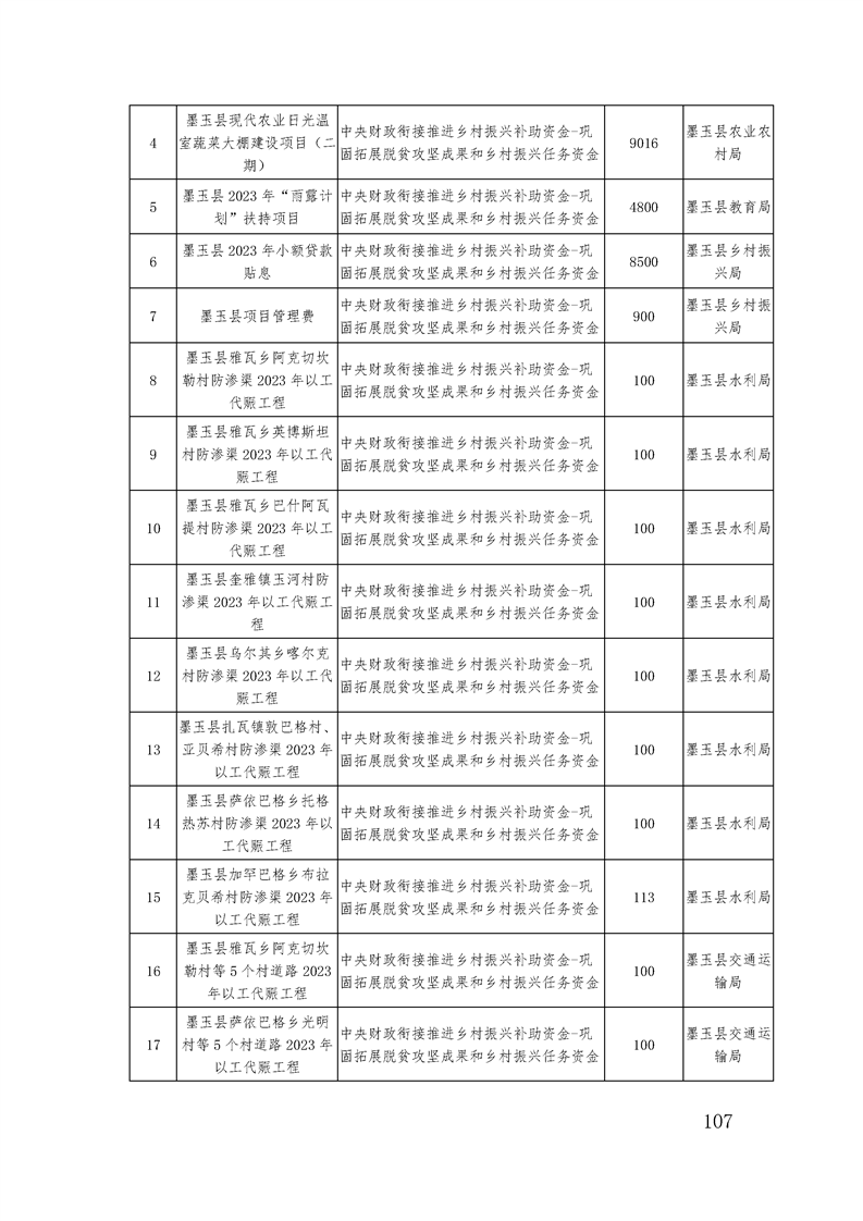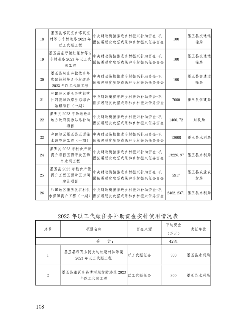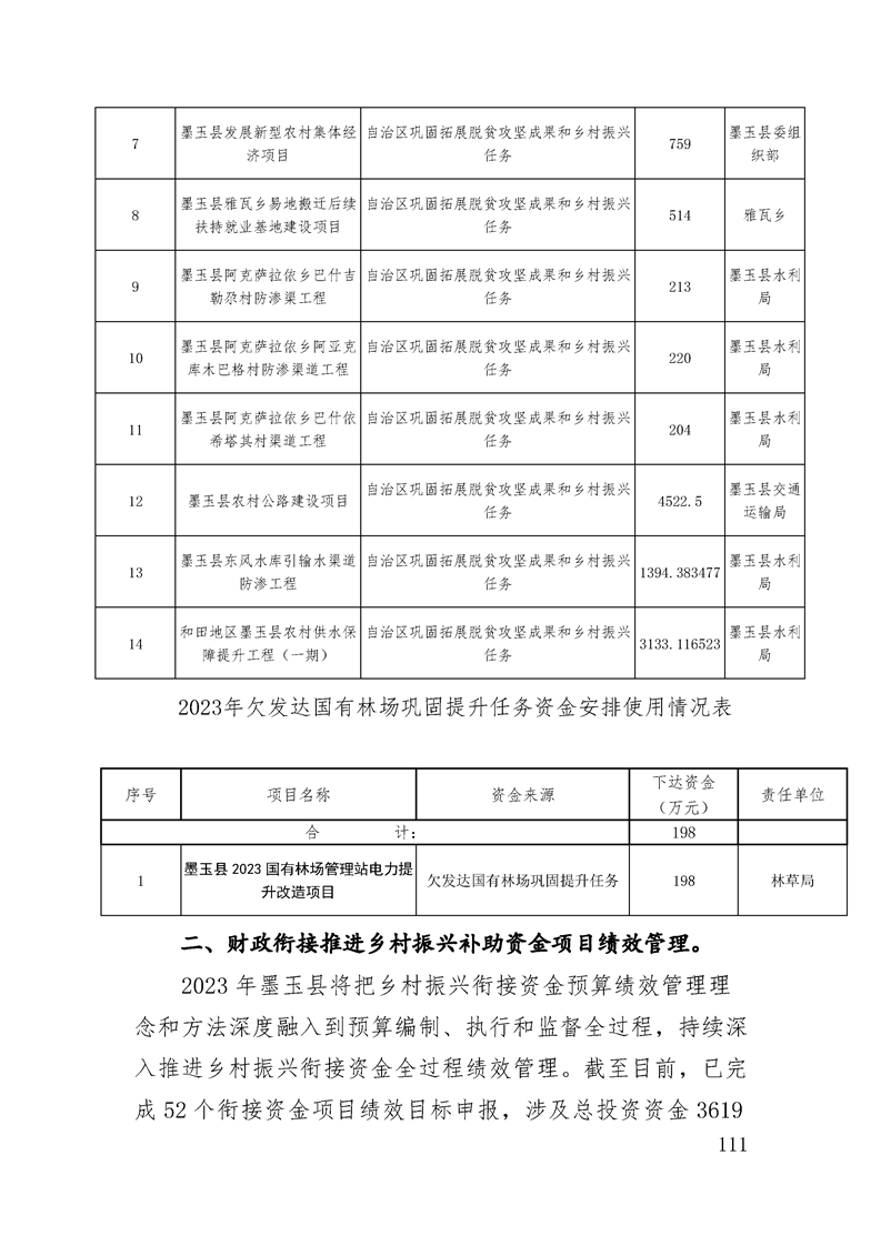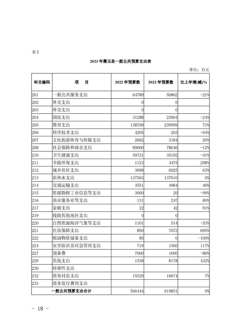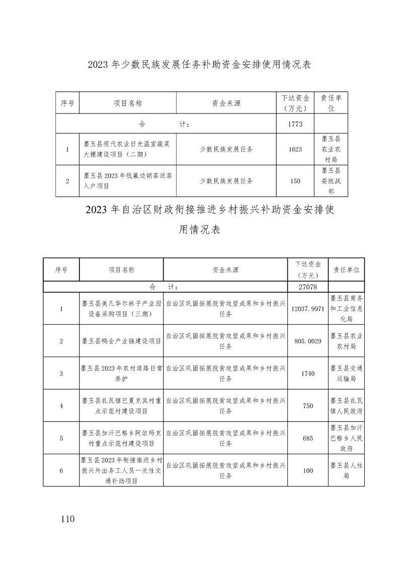 墨玉县2023年政府预算