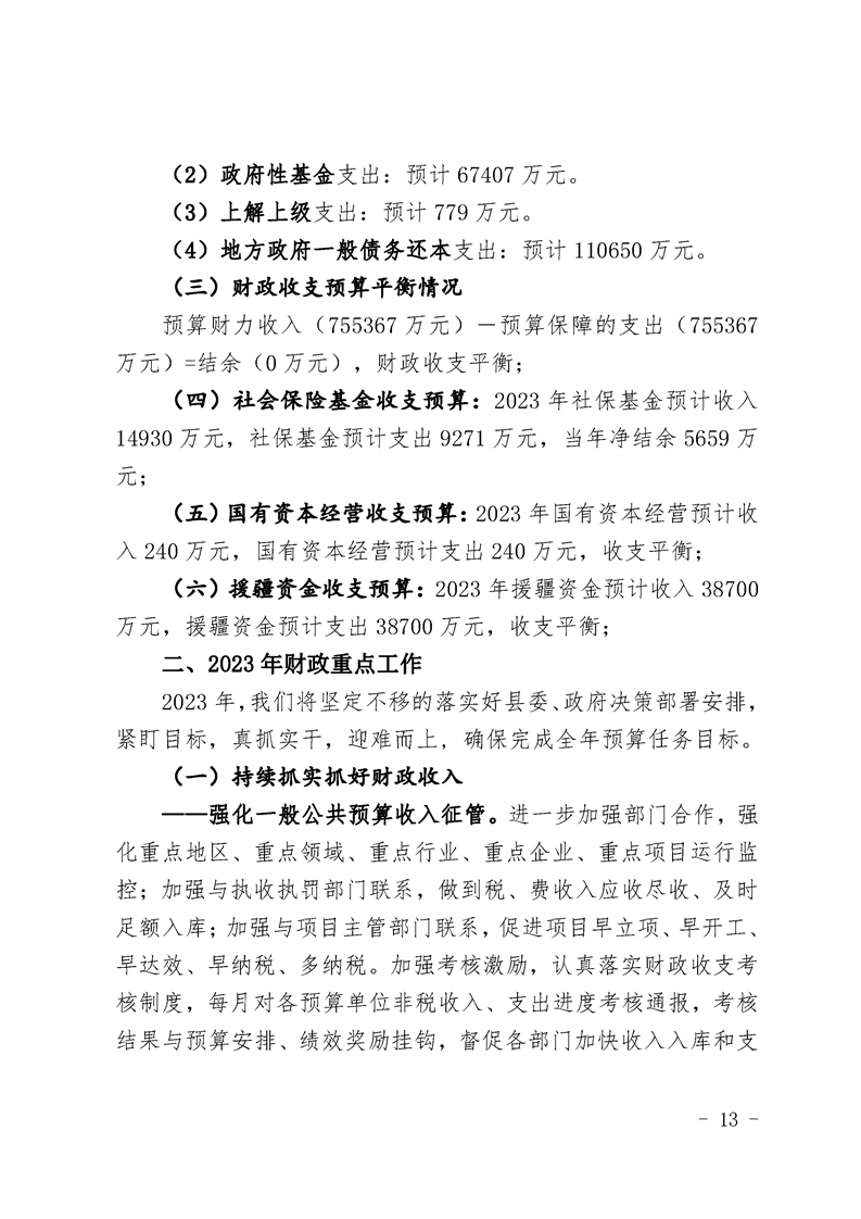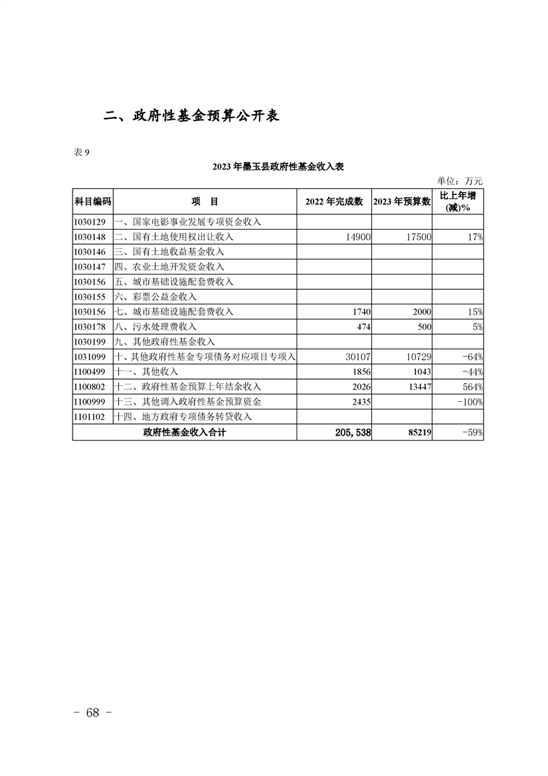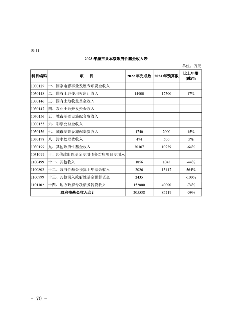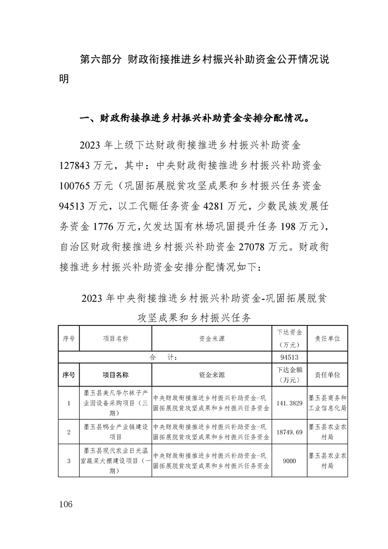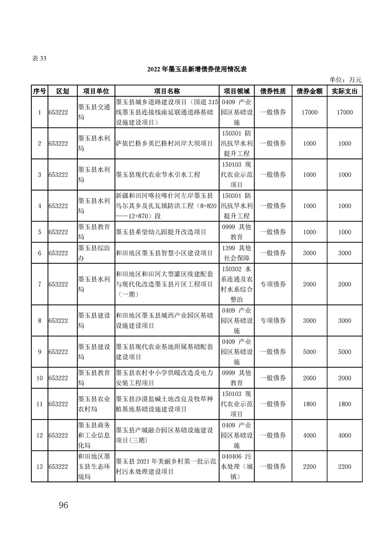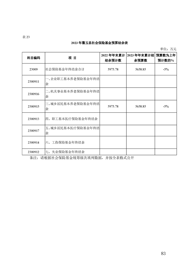 墨玉县2023年政府预算