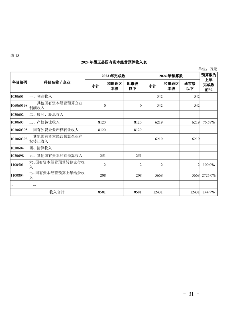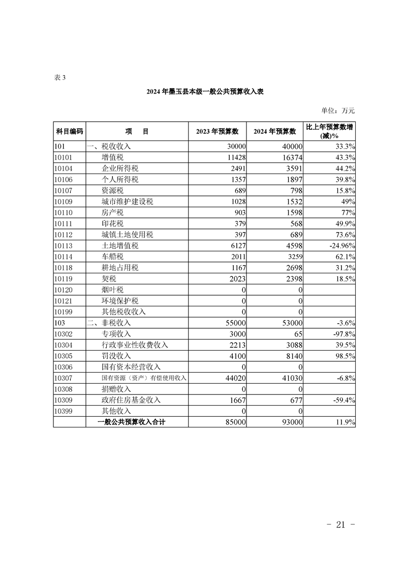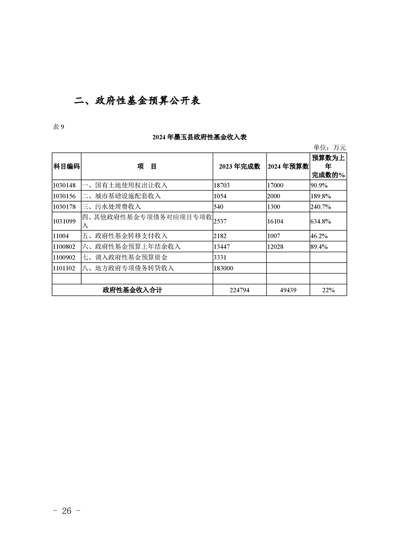 墨玉县2024年政府预算
