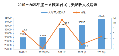 全年城镇居民人均可支配收入34636元,比上年增长4.8%;农村居民人均可支配收入11858元,比上年增长8.8%。