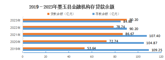 金融机构各项贷款余额90.2亿元。其中,住户贷款余额36.69亿元,企业及机关团体贷款余额53.51亿元。金融存贷比为106.2%,比上年提高了18.9个百分点。