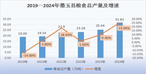 全年粮食总产量增长24.8%。其中,小麦产量增长14.3%;玉米产量增长41.4%,稻谷产量增长42.1%。