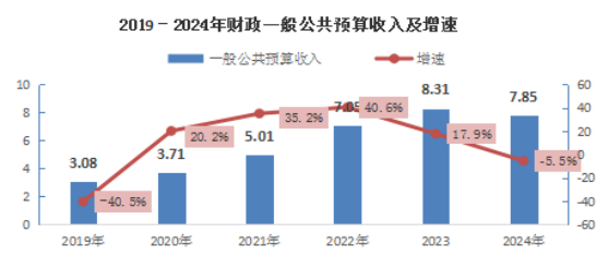 全年一般公共预算收入同比下降5.5%。其中,税收收入下降4.7%,非税收入下降6.0%。