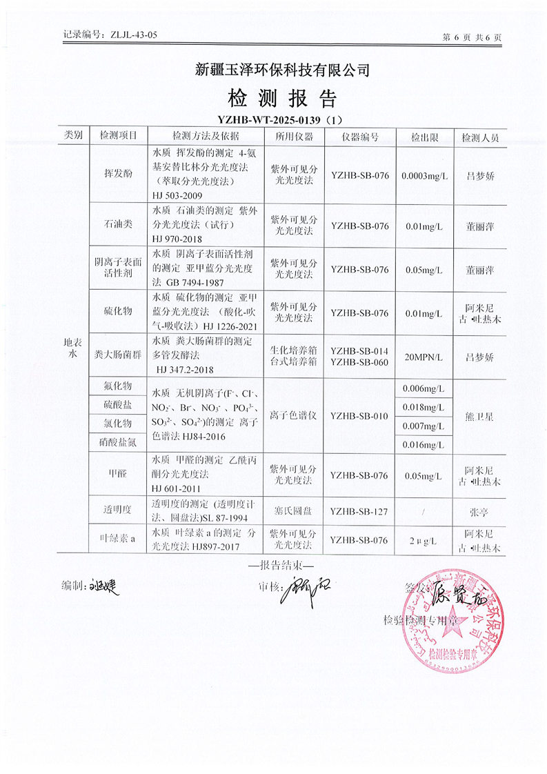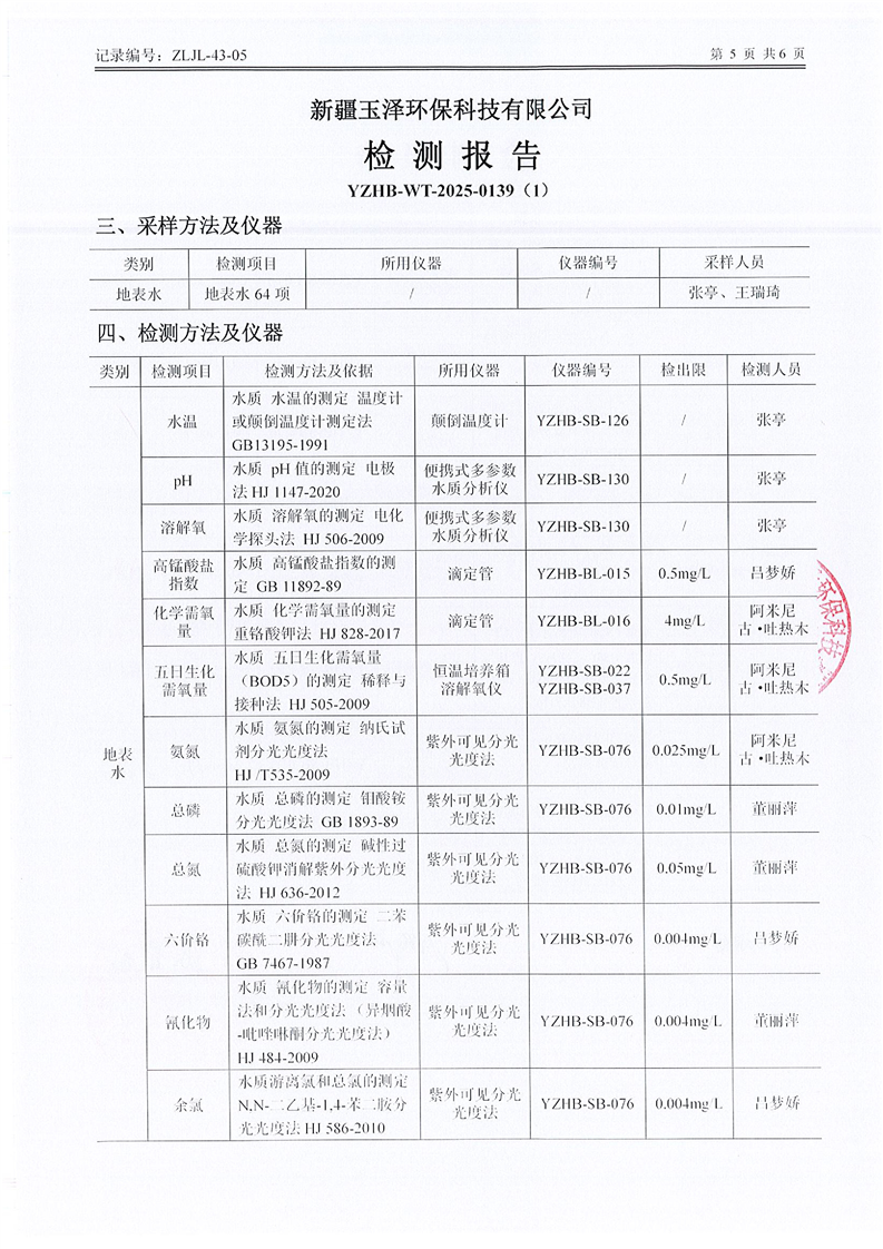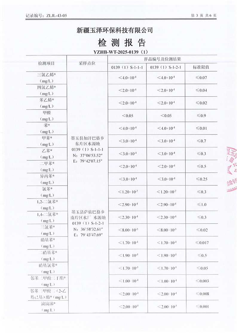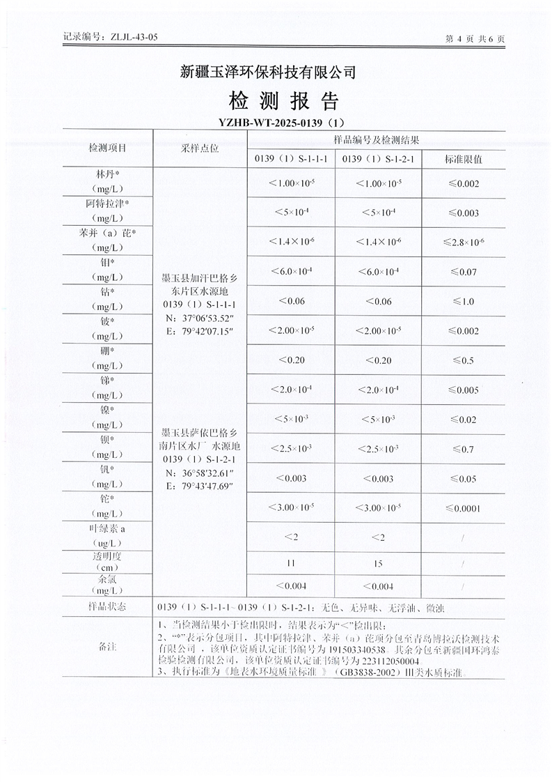 2025年墨玉县国家生态功能区县域生态环境质量监测-集中式饮用水水源地水质监测 (第一季度)
