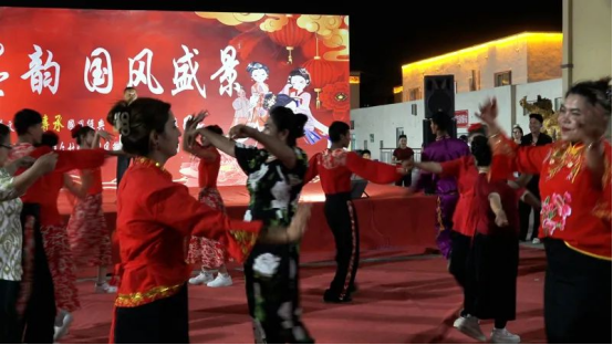 演出在热情洋溢的扇子舞《中国美》中拉开序幕,舞者们手持彩扇,翩跹起舞,瞬间点燃了现场气氛。随后,孩子们表演的舞蹈《中华全家福》以整齐灵动的动作和天真烂漫的笑容,赢得阵阵掌声。整场晚会节目形式多样、内容丰富,既有经典歌曲《敢问路在何方》《爱我中华》《大中国》的深情演绎,也有展现时代风采的广场舞《石榴花开新时代》、独唱《有那么一个地方》和舞蹈《幸福生活跳起来》。压轴节目合唱《我和我的祖国》更是引发全场共鸣,将活动推向高潮。