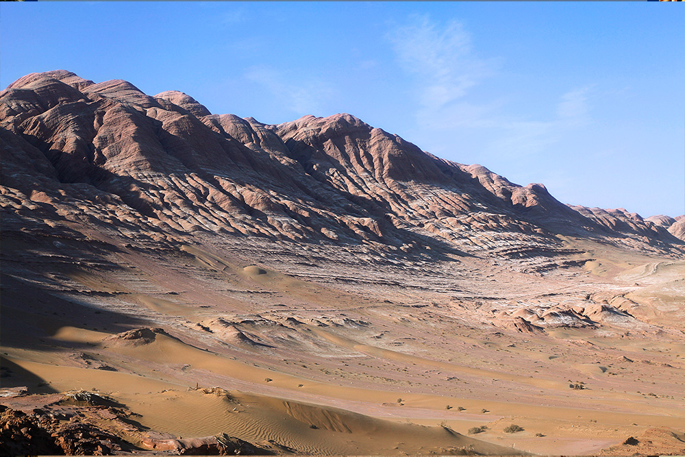 红白山位于和田地区墨玉县境内,距墨玉县城180公里,地处塔克拉玛干沙漠西缘,塔里木盆地中央西南部。红白山海拔1570米,东西长90公里,占地面积700平方公里。