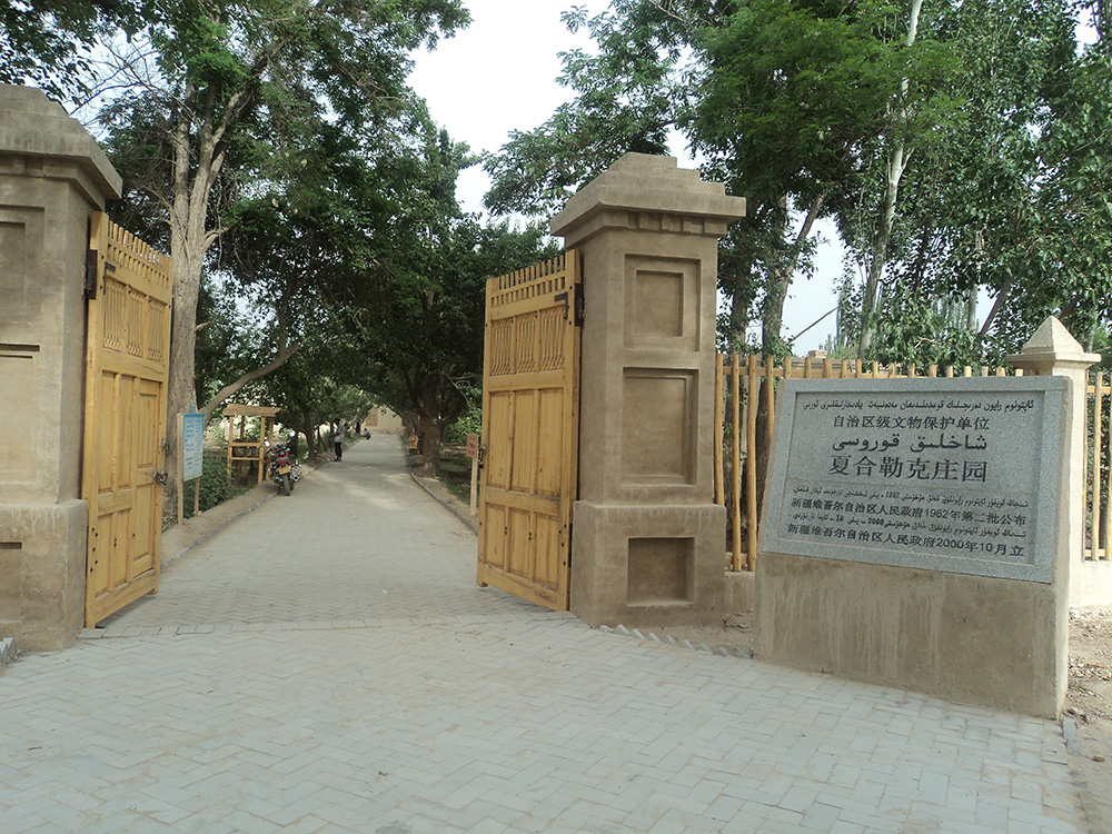 夏合勒克,维吾尔语为树梢之意。墨玉县夏合勒克庄园位于墨玉县扎瓦乡夏合勒克村,东北距县城15公里,北偏西距扎瓦镇政府5公里,现占地26.4亩,1962年被自治区人民政府公布为自治区级文物保护单位,2018年被评为3A级景区。夏合勒克庄园形成于19世纪中叶,现存1座住所和庄园。
