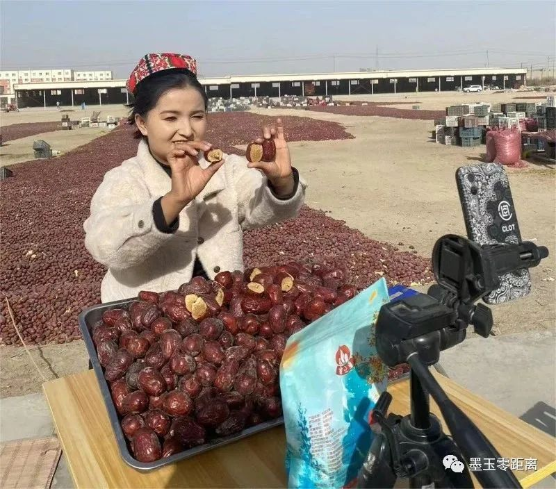 今年墨玉县各乡镇农民红枣喜获丰收。一筐筐红枣被皮卡车、电动三轮车运送到当地红枣加工企业加工成枣片、枣干等产品,并借助抖音直播、淘宝小店销往全国各地。